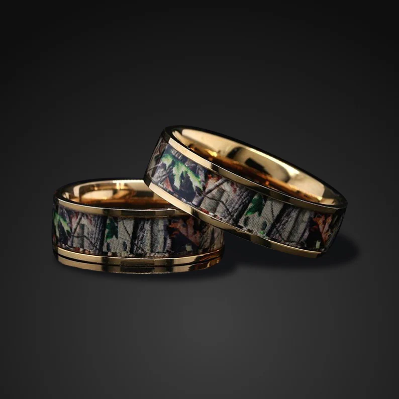 14K Gold plating Camo Ring Camouflage Wedding Band | Titanium Wedding Band