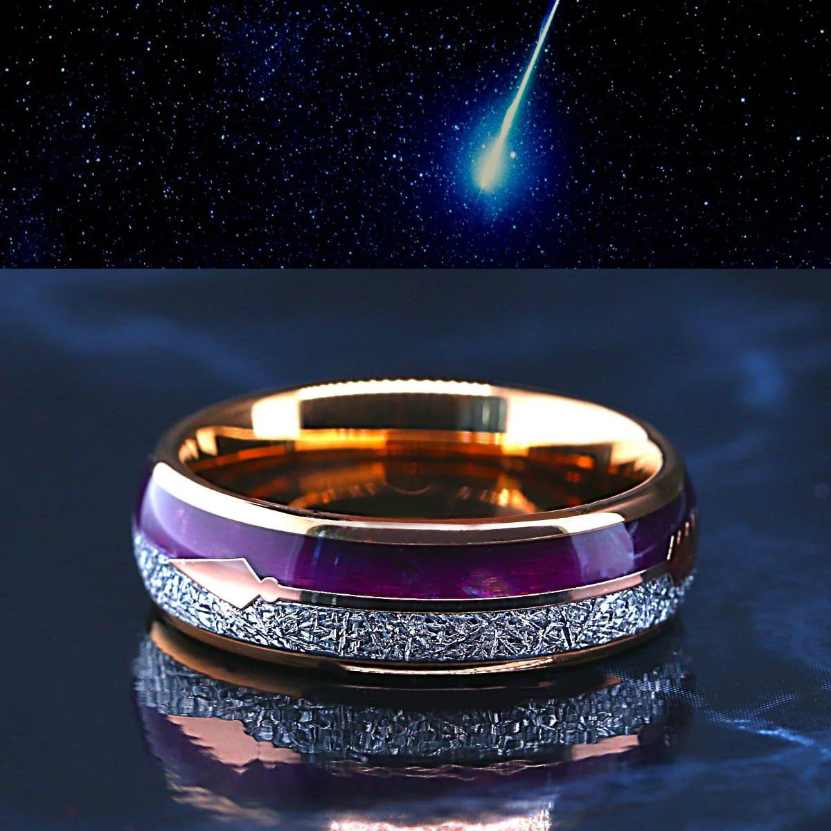 Made of Tungsten, and featuring a 18K Rose gold plating, offers a captivating fusion of brilliance and timeless sophistication.